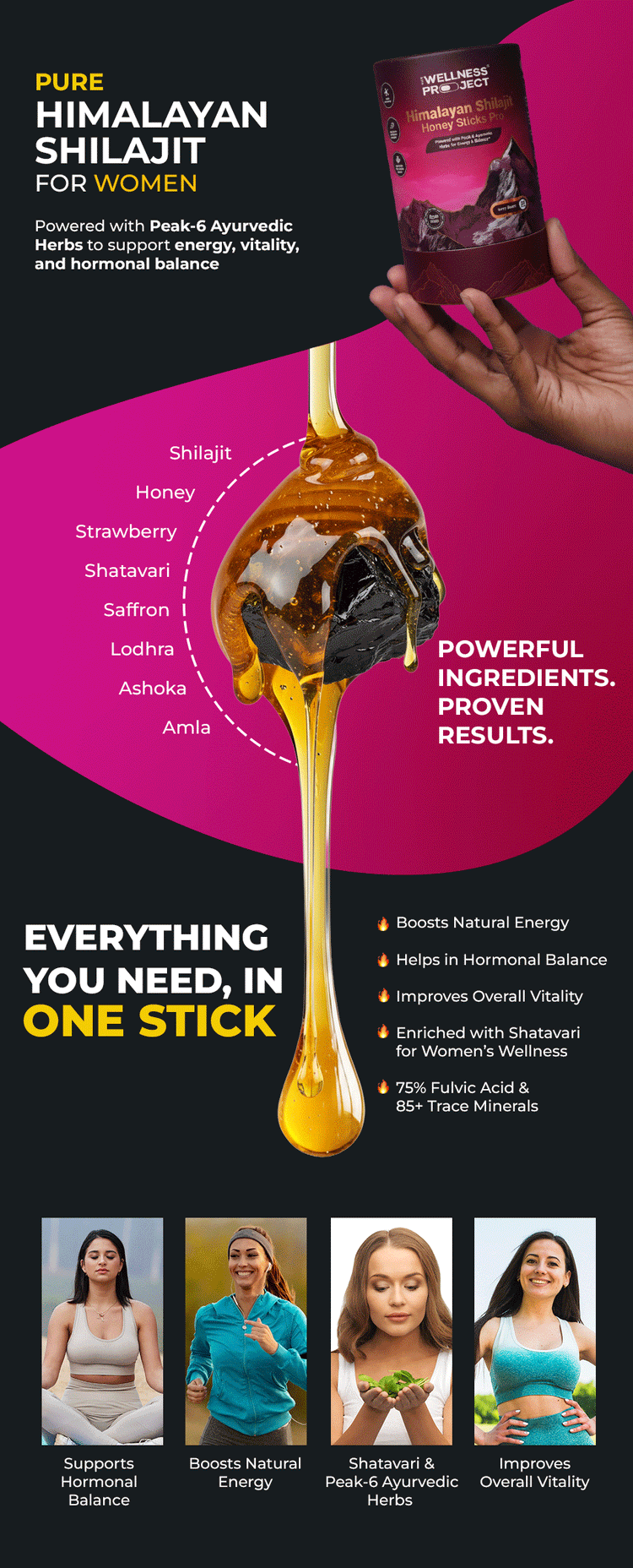 Power your day with Himalayan Shilajit Honey Sticks Pro. Crafted for women who want natural energy, hormonal balance, and lasting vitality in a single, indulgent stick. Each stick blends the purest lab-tested Himalayan Shilajit with Shatavari & other 4 vital...